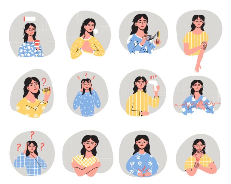 Long-term effects of covid-19 or post covid syndrome. Hair loss, depression, dyspnea, arrhythmia, eczema, indigestion and others symptoms. Health condition...